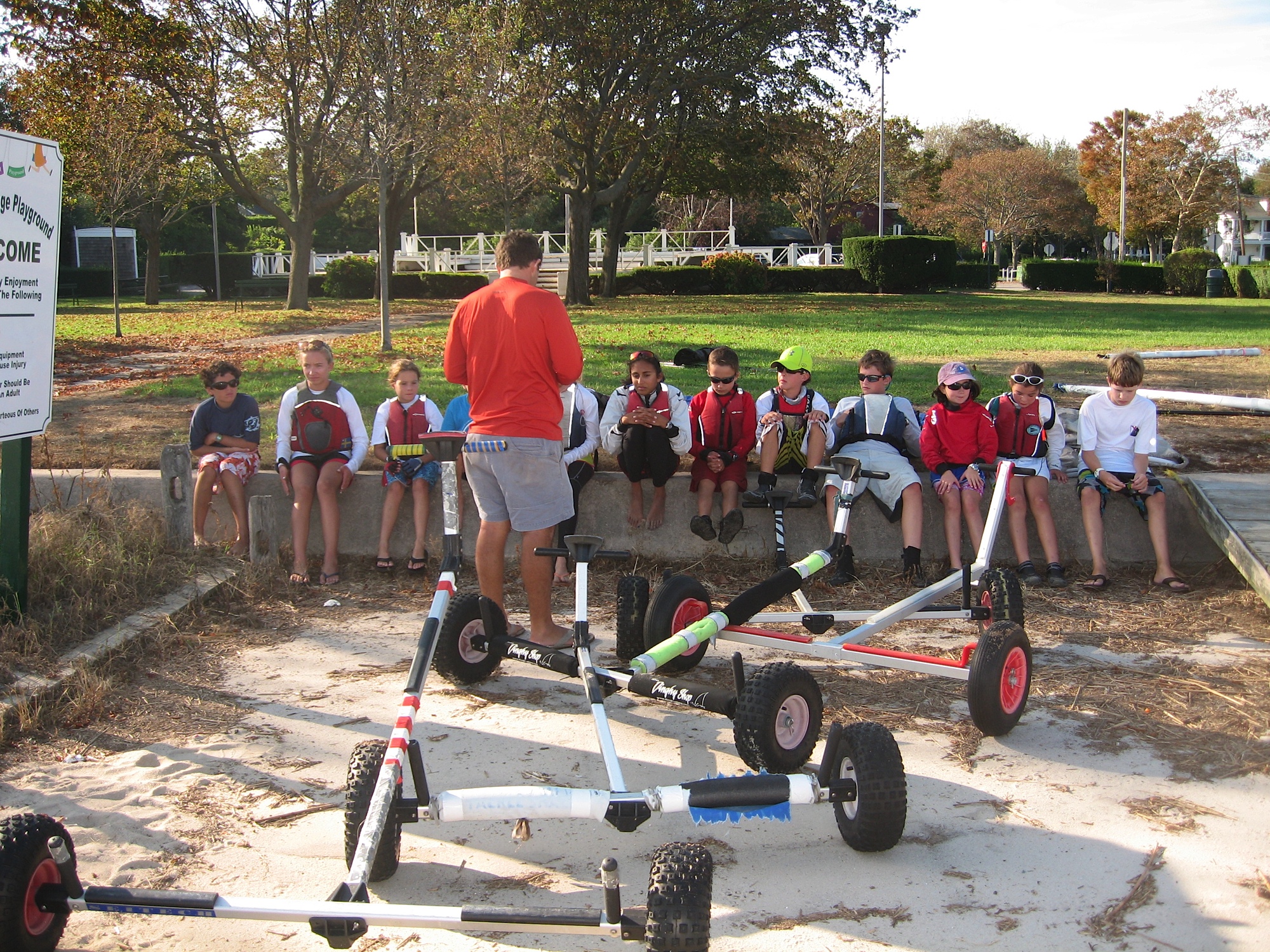 A shot from the debrief after our first ever day of sailing as SailStrong. Big thanks to all the families that made this possible, to the sailors for putting in a big effort on the water, and to Bellport Bay YC for hosting us. Everyone is looking a bit exhausted but they all came back with energy for some fitness Sunday morning and then another long day on the water. Another weekend of practice in Bellport this weekend will be followed by our first regatta, the USODA Atlantic Coast Champs, the following weekend in Baltimore.