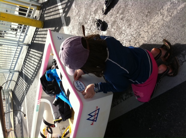 Since we have had so much good sailing this week we decided to make today an adventure and head out to Stiltsville for lunch. Stiltsville is a group of houses in Biscayne Bay just south of Key Biscayne. Thomas was excited to do this for the second year in a row and I think this will be an annual event for our Orange Bowl practice. Have to throw some fun into the mix 🙂