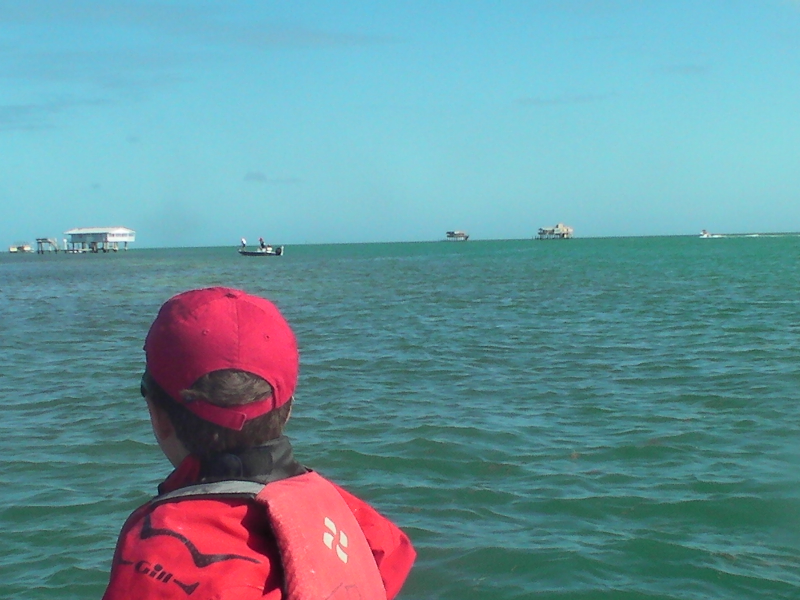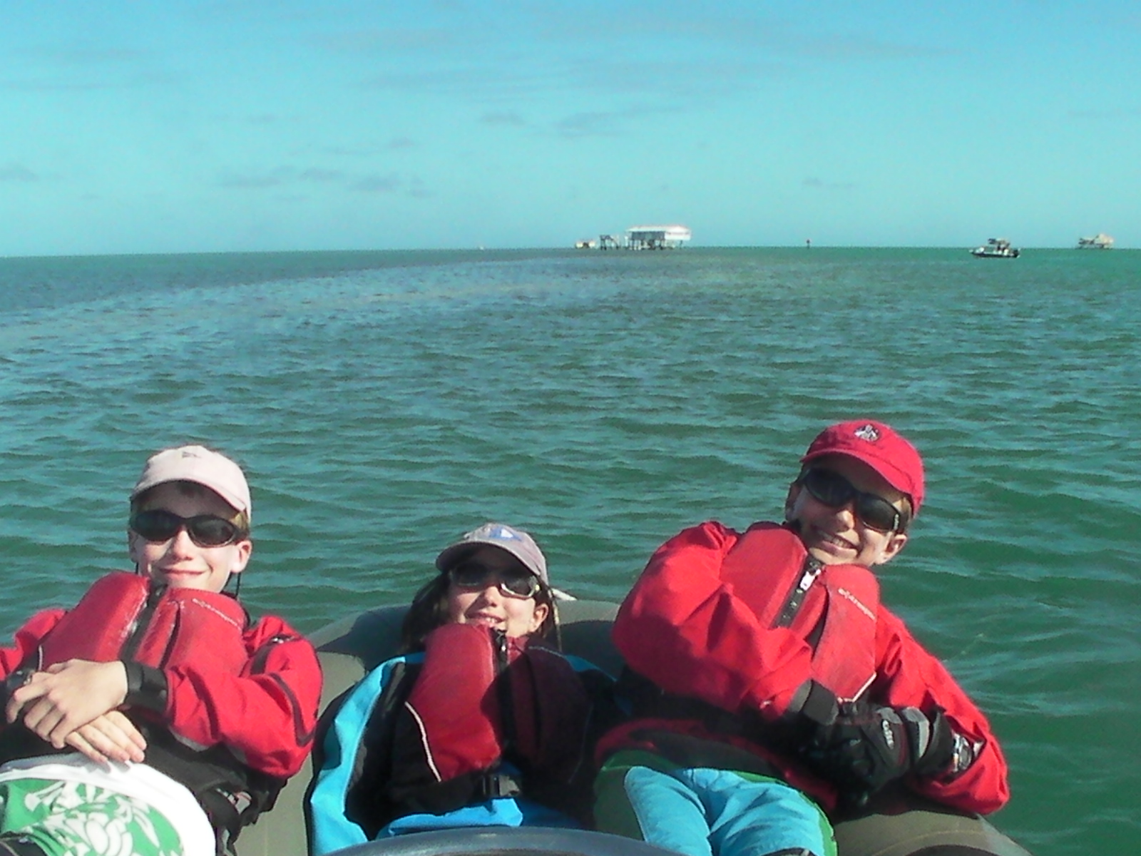 Since we have had so much good sailing this week we decided to make today an adventure and head out to Stiltsville for lunch. Stiltsville is a group of houses in Biscayne Bay just south of Key Biscayne. Thomas was excited to do this for the second year in a row and I think this will be an annual event for our Orange Bowl practice. Have to throw some fun into the mix 🙂