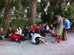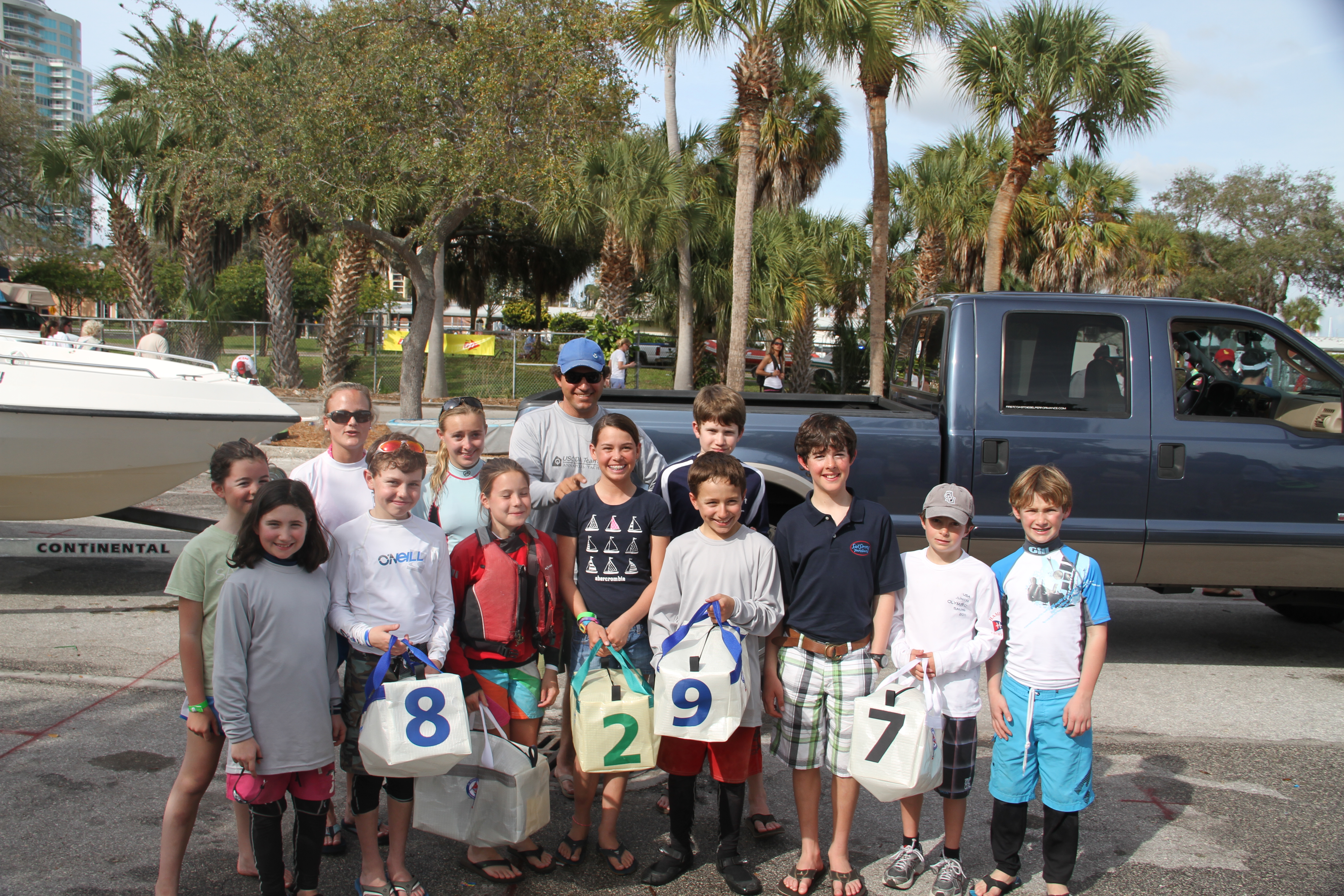 This years Valentine’s Dar Regatta at St. Petersburg Yacht Club only ended up with three races for the regatta but it was an excellent learning experience for the kids nonetheless and some of the sailors still came away with some good results, most notably Julia Leighton was second girl. The current hurt the team as a whole with some bad decisions about laylines on the upwind and rhum line on the downwind. Add the top wind speed of 7 knots to the mix and there was some definite frustration. The starting line experiences were valuable though and will help in any conditions. It was great to have 17 sailors for the event, all having a good time and seem to be progressing. Thanks to Leigh Kempton for coming down and being our second coach.