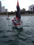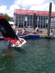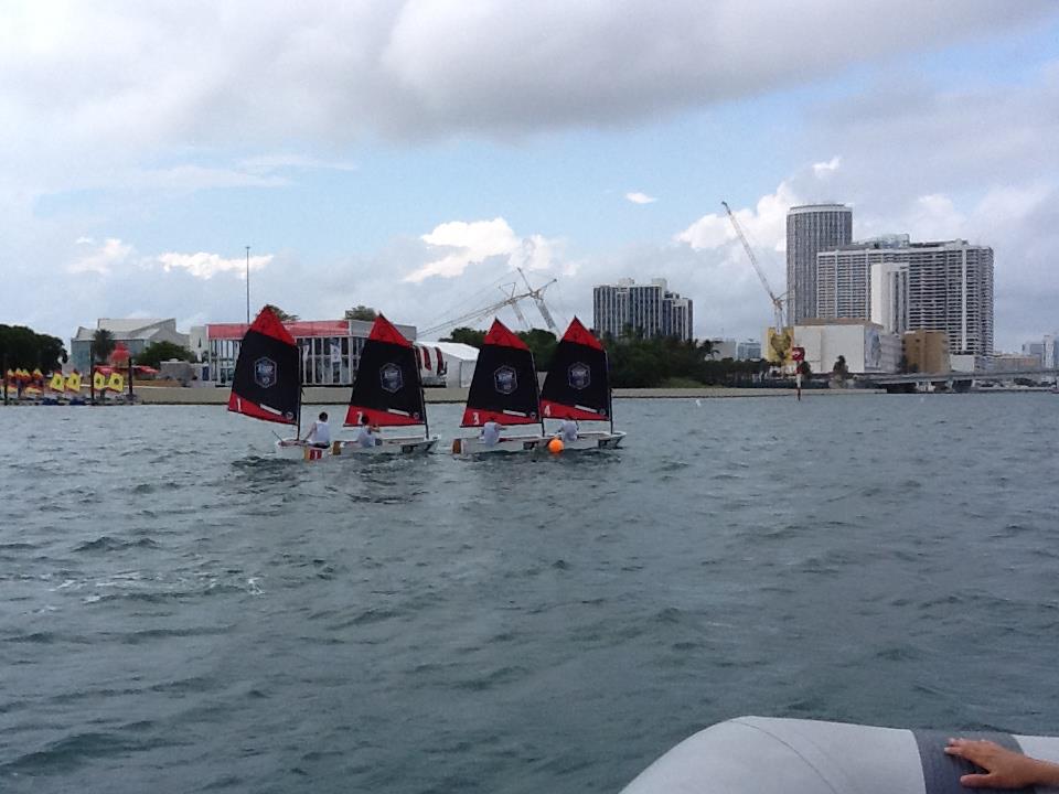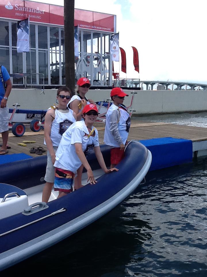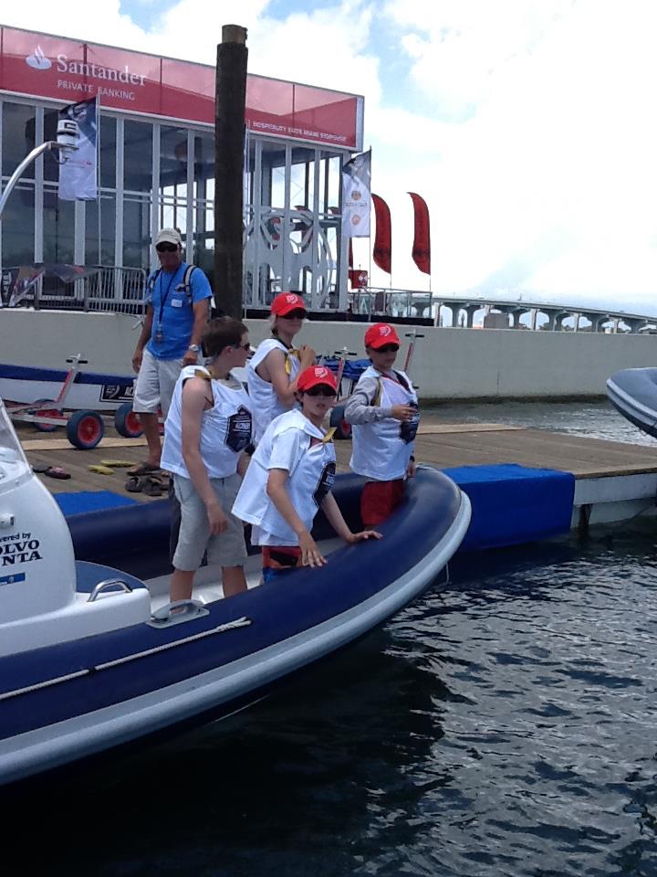 At each stop of the Volvo Ocean Race there has been a Youth Academy Team Racing program, where kids from around the country of that port come together to learn, meet members of the VOR teams, see the boats, have fun, and do some team racing. At the same time there was an ISAF (International Sailing Federation) umpiring seminar going on so the kids got to get some great rules instruction. The first day was a practice day, followed on the second day with some work with the umpires and practice races. The third day was the regatta. On the evening of the second day there was an event dinner where members of each team met with the kids and talked about their experiences in the race. Each youth team represented on of the VOR teams and we happened to be representing Team Sanya which sailed in on our second day there. We also got to see the boats on the hard and the repairs being done to the boats, as well as the stepping of the masts and launching of some of them. Overall it was an amazing experience for the kids and the Volvo Ocean Race did a great job of hosting us.