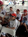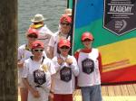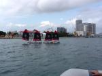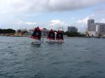 - Gray, Aaron, Stephanie and Thomas waiting to switch in to boats for practice.