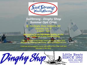We are excited about our first Open Clinic @ The Dinghy Shop July 14th. It should be a great day with the usual South Shore sea breeze. The only fee is $10 per sailor to the Dinghy Shop for letting us use the facility. For South Shore Opti sailors the Midget Qualifier is the following Wednesday July 18th, so this is a great chance to get tuned up right before the event.