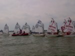 At this point, the week was just getting going, with the four days of the Open Nationals remaining. Racing was tough with very shifty medium wind and a lot of boat chop on Sandusky Bay, which created a washing machine effect. Because of bad weather, the RC was not able to get many races off during the qualifying portion of the regatta, so we had 7 races on the first three days to determine who would be in the Gold (top 94 boats) and Silver Fleet (next 188). Of the 25 sailors we had in attendance 10 made the Gold Fleet. JC Hermus ended up 4th overall and 1st in Blue Fleet. Thomas Rice was 16th overall and 5th in Blue Fleet. Sean Crabb was 18th Overall. In Silver Fleet we were lead by Julia LaForgia in 10th and Camille White in 27th. Lots of good sailing by all the kids and a big group qualified for Team Trials.