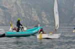 Maddie and Madeleine preparing for their start. The red dots are showing up all over the place. Lake Garda Italy