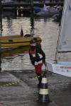 Peter helping Maddie Hawkins get ready for a race on Lake Garda.