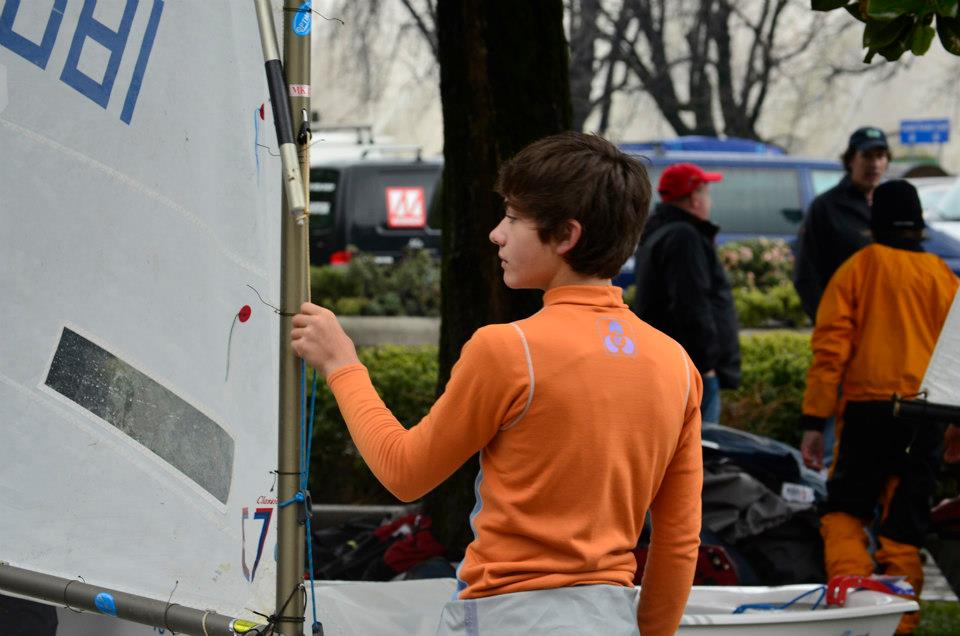 Garda_Jake2 Published April 4, 2013 at 960 × 636 in Lots of overseas success and fun for SailStrong this Spring Jake Vickers getting that sail tie just right. Lake Garda, Italy