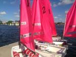 SailStrong Red (JC Hermus, Thomas Rice, Gray Benson, Maddie Hawkins, and Clayton Johnson) bested 20 other team to win the Lauderdale Yacht Club Optimist Team Race Championship. They had a tough first day, losing a few more races than they had hoped, and were sitting in 7th after 2 1/2 qualifying rounds, tied with SailStrong Blue. On Sunday they came together as a team and went on to win every race in the following 1 1/2 rounds before the finals. This put them in first on points, just one ahead of Coral Reef YC 2 and gave them a pass through to the finals. The next four teams would face off to get to the finals.